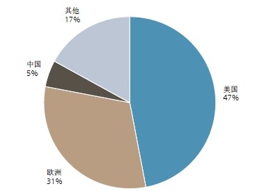 图片1:全球乐鱼(中国)市场-美国+欧洲占78%市场份额