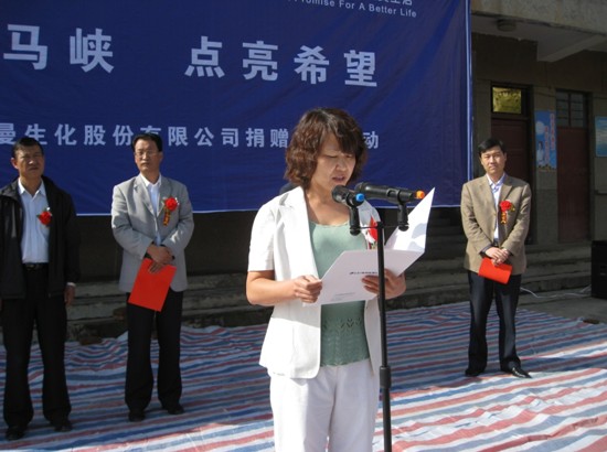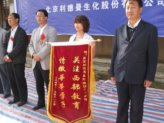 马峡,甘肃—— 2010年9月7日,乐鱼网页版向甘肃省平凉市华亭县马峡中心小学无偿捐赠了价值十万元的钢木课桌椅。乐鱼网页版副总经理张雅丽、华亭县县委常委、副县长徐德才、华亭县教育局局长陶玉宏等出席了捐赠仪式。马峡中心小学校长杜安平向乐鱼网页版公司赠送了锦旗,表达感激之情。