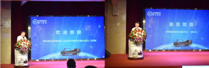 顺丰冷运业务开发与解决方案处负责人洪德智做欢迎致辞 中国医药商业协会副秘书长解奕炯致辞