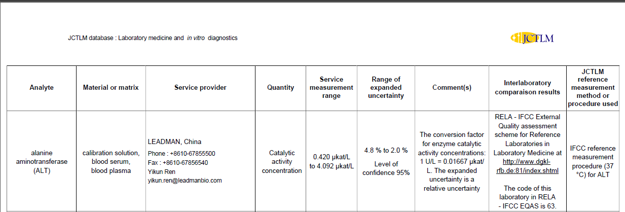 喜讯!乐鱼网页版医学参考实验室正式进入JCTLM参考测量服务实验室数据库