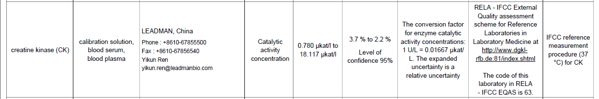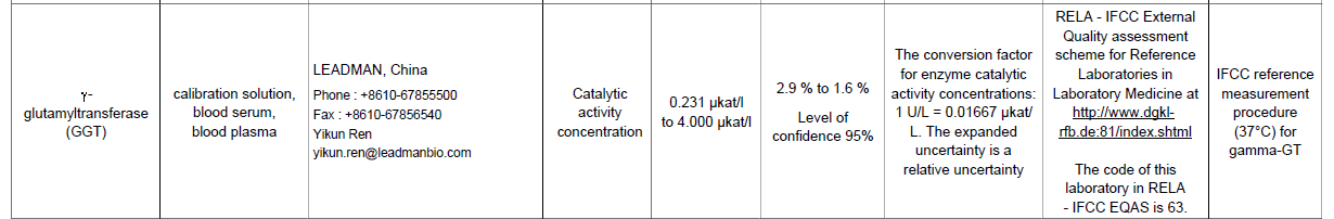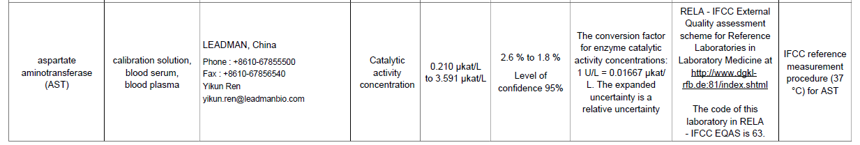 2021年,进入JCTLM参考测量服务实验室数据库