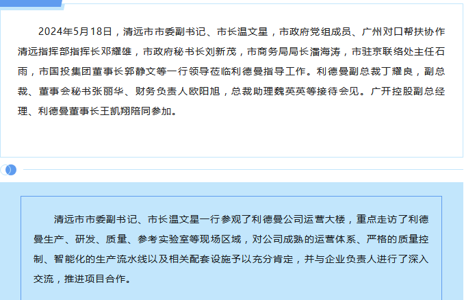 清远市市委副书记、市长温文星一行 莅临乐鱼网页版指导工作